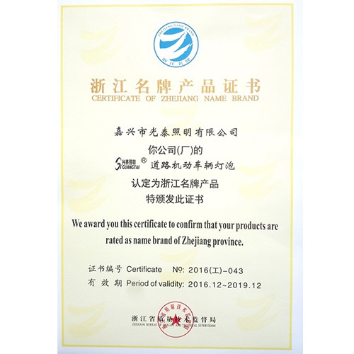 2016 Zhejiang Famous Brand Certificate